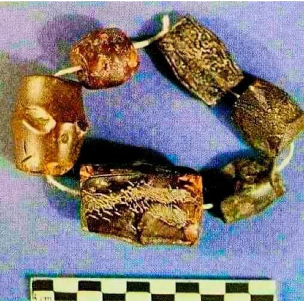 في زاويةٍ من زوايا قصر أوغاريت الملكي حيث كانت الخطى تُهمس فوق الحجر المصقول وُلدت هذه الحبات من العنبر لا كزينةٍ عابرة بل كأثرٍ من زمنٍ كان فيه الجمال لغةً والمواد النادرة رسائل بعيدة.