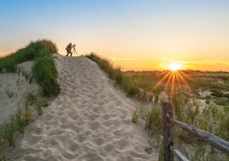 عند تصوير المناظر الطبيعية أو غيرها من المشاهد الخارجية، غالبًا ما يضع المبتدئون خط الأفق في منتصف الإطار تمامًا، مما يؤدي إلى تقسيم الصورة إلى نصفين وظهورها بمظهر باهت لعدم وجود ما يلفت الانتباه. بدلًا من ذلك، حاول وضع خط الأفق إما على الثلث العلوي أو السفلي من الإطار.