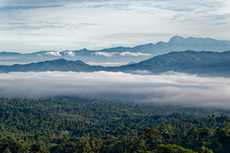 شهدت هذه المنطقة تغيرات عديدة على مر القرون الماضية. فإذا تمكنت من اختراق غيوم السحب الكثيفة التي تغطيها معظم أيام السنة، ستلاحظ أن الغطاء الأخضر الممتد للغابات المطيرة قد اختفى. لم تعد سفوح التلال هنا وعرة كالمنحدرات الشديدة على بعد بضعة كيلومترات شرقًا، مما يجعلها أكثر ملاءمة للزراعة.