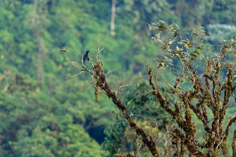 نحن في قلب منطقة تشوكو الجغرافية الحيوانية الفريدة، الممتدة على طول الجانب المطل على المحيط الهادئ من جبال الأنديز، من شمال الإكوادور إلى شريط طويل يلتف حول ساحل كولومبيا. هذه البقعة الضيقة من الأرض، المحصورة بين سلسلة جبال شاهقة والمحيط الهادئ، كانت حتى بضعة قرون مضت غابة كثيفة يصعب اختراقها. يتغير طابعها بشكل جذري مع الارتفاع والمسافة من البحر – من الغابات النفضية الجافة على طول الساحل، مرورًا بغابات سفوح الجبال والغابات السحابية على المنحدرات، وصولًا إلى غابات البوليبس الساحرة في أعلى وديان الجبال.