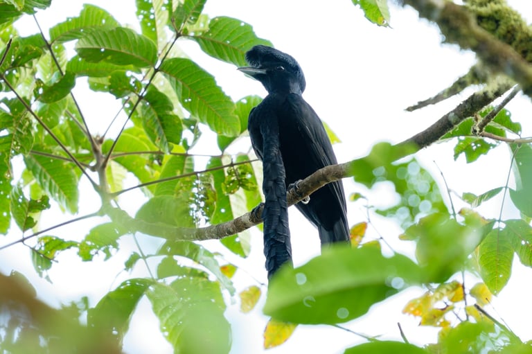 أدت هذه التحولات الجذرية في طبيعة الغابات، عبر الزمن، إلى ظهور تنوع مذهل في أنواع الحيوانات. العديد منها مستوطن في تشوكو، أي أنواع لا توجد في أي مكان آخر على وجه الأرض. ومن بين أكثر الطيور إثارةً للاهتمام في هذه الزاوية الرطبة من أمريكا الجنوبية، بلا شك، طائر المظلة طويل اللغد (Cephalopterus penduliger) المهدد بالانقراض. قد لا يبهر أكبر طائر مغرد في الأمريكتين بريشه الزاهي، لكنه يتفوق على جميع الطيور الأخرى تقريبًا من حيث غرابة تركيبه التشريحي. بدأ بحثي عن هذا الطائر في تلك القرية الزراعية الصغيرة الواقعة خارج جبال الأنديز.