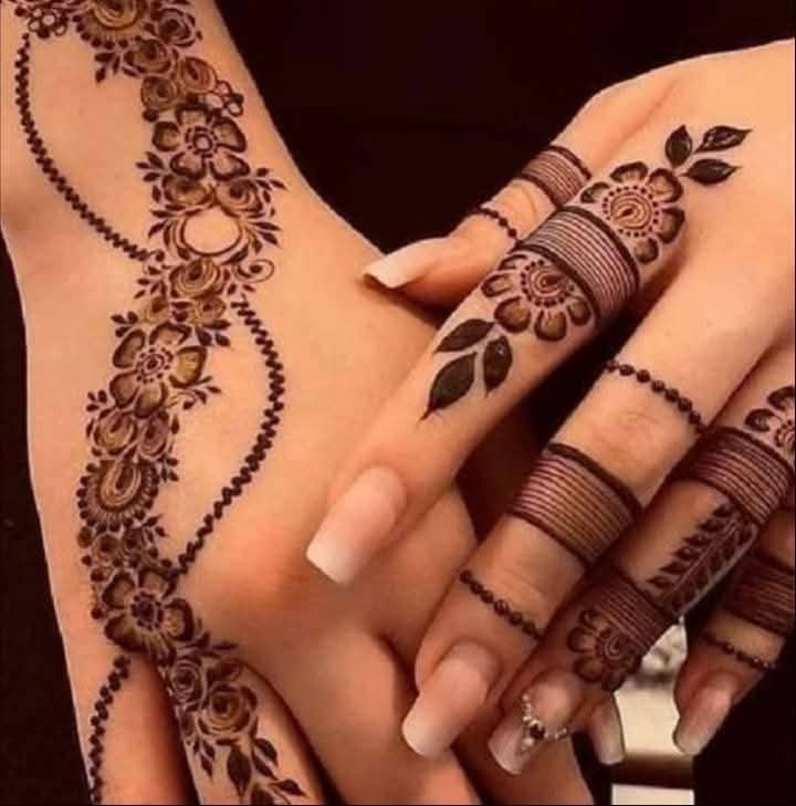 بعد تحديد المكان ترسم الاختصاصية الخطوط والنقط والزخارف النباية الجميلة في يسر وسلاسة.