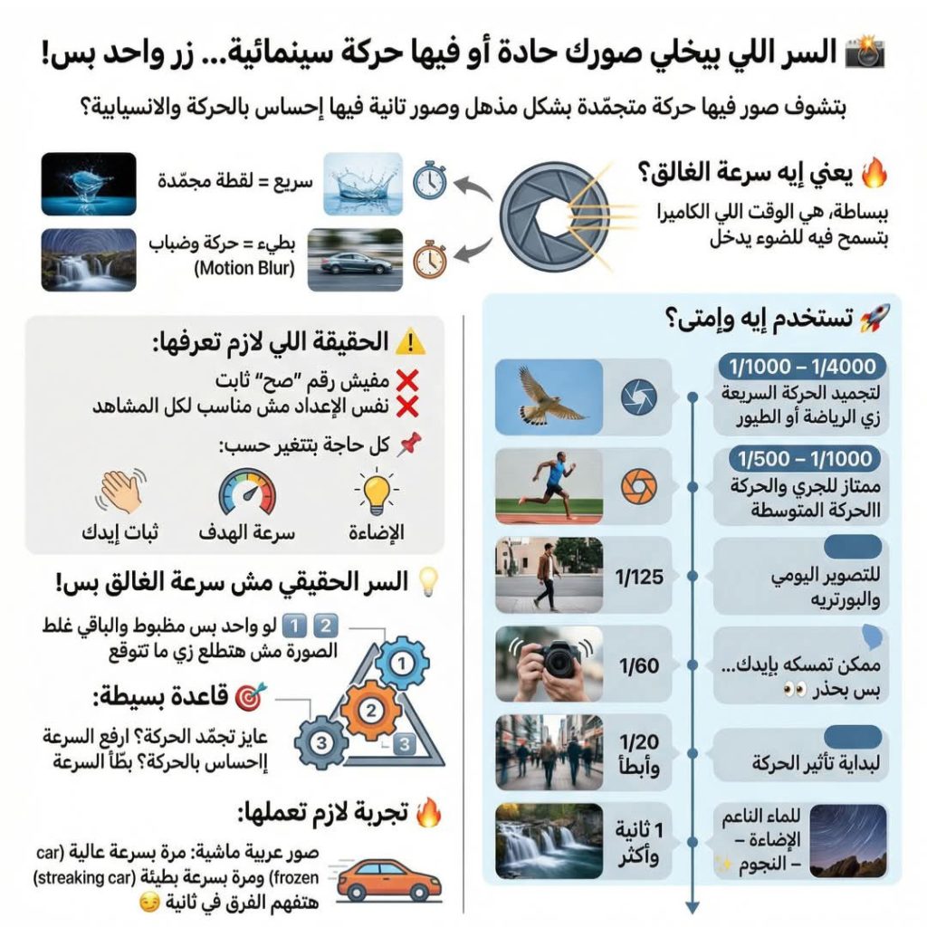💡 السر الحقيقي مش سرعة الغالق بس!
