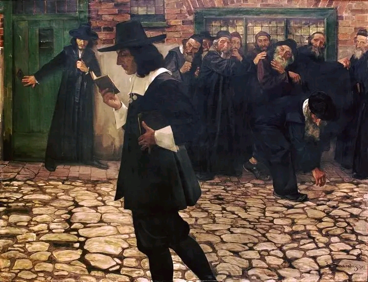 الراجل ده ماكانش ثوري بالصوت العالي ولا بالشتيمة، كان ثوري بالعقل البارد، وده أخطر نوع من الثورة. اتولد يهودي في أمستردام في القرن السابع عشر، وسط طائفة متدينة جدًا، وفي وقت أوروبا لسه خارجة من حروب دينية بتقطع في بعض، والناس شايفة إن أي سؤال زيادة عن اللزوم ممكن يوديك المقصلة أو الحرق، وسبينوزا قرر يسأل… بس مش سؤالين تلاتة، لا، قرر يشك في الأساس نفسه. النتيجة؟ اتطرد من الطائفة اليهودية حرمان كامل، لا سلام، لا كلام، لا حتى جنازة، كأنه مات وهو عايش، وده مهم لأن العزلة دي شكّلت فلسفته: راجل قرر يعيش برا القطيع، برا أي سلطة دينية أو اجتماعية، ويعتمد على حاجة واحدة بس العقل.