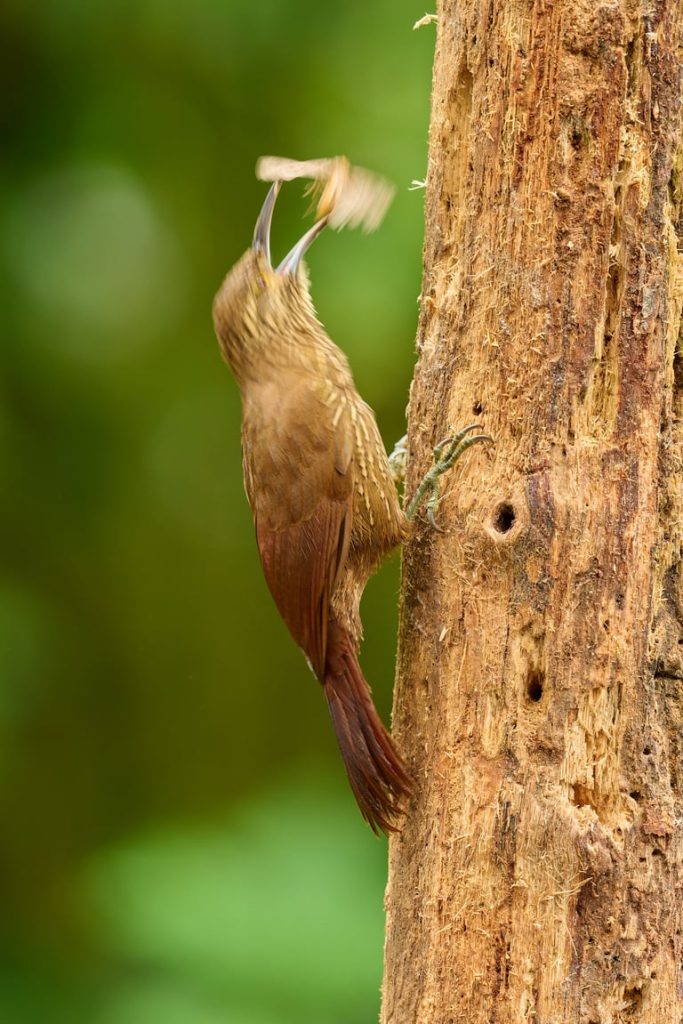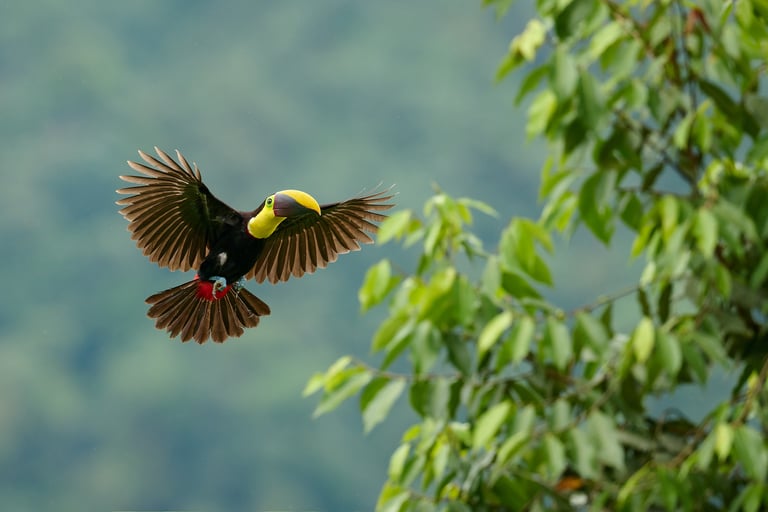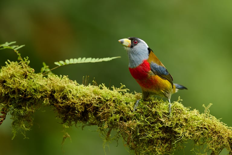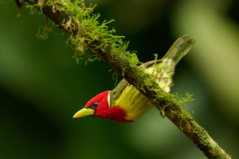 يُعدّ طائر الطوقان باربيت (Semnornis ramphastinus)، المتوطن في منطقة تشوكو الإكوادورية والكولومبية، من الأنواع التي يُمكن تصويرها باستخدام سرعات غالق أطول قليلاً من قاعدة 1/البعد البؤري المعتادة. أما بالنسبة للطيور المغردة شديدة النشاط، فمن الأفضل استخدام سرعة غالق أسرع بمرتين إلى ثلاث مرات على الأقل.
