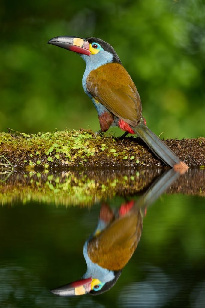 عندما يكون الضوء كافيًا – وهو ما يُعدّ سببًا كافيًا للاحتفال في غابة سحابية – فإن سرعة غالق 1/500 ثانية مع حامل ثلاثي القوائم تُعدّ سرعة غالق مريحة للبدء. طائر الطوقان الجبلي ذو المنقار المسطح (Andigena laminirostris)