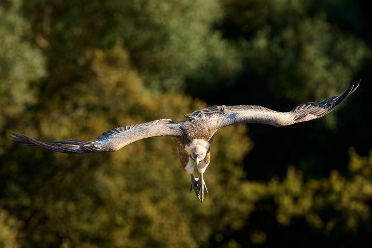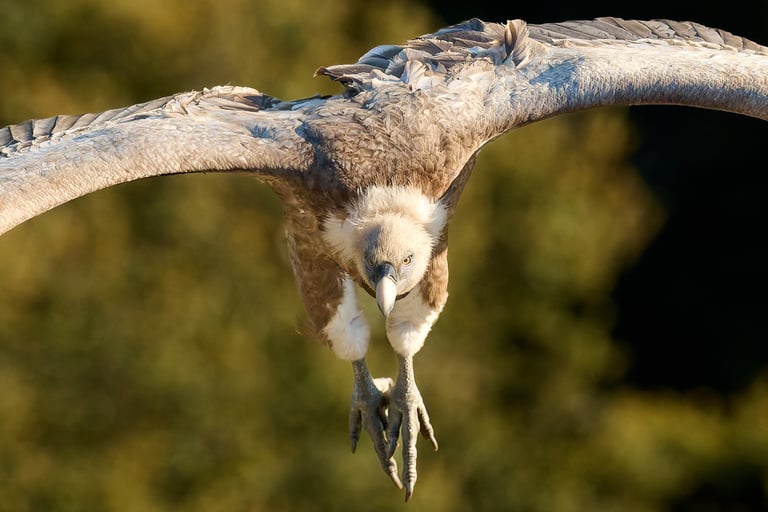 ثمة استثناء آخر يتمثل في الطيور التي تحلق مباشرة نحو الكاميرا. في هذا الاتجاه، تكون سرعتها النسبية في أعلى مستوياتها، ويجب أن تتناسب سرعة الغالق مع ذلك. حتى الأنواع الكبيرة كالنسور، التي يمكن تصويرها عادةً بسرعة غالق تبلغ حوالي 1/1000 من الثانية، قد تتطلب سرعة غالق تبلغ 1/2500 من الثانية أو أسرع عندما تقترب منك مباشرة.