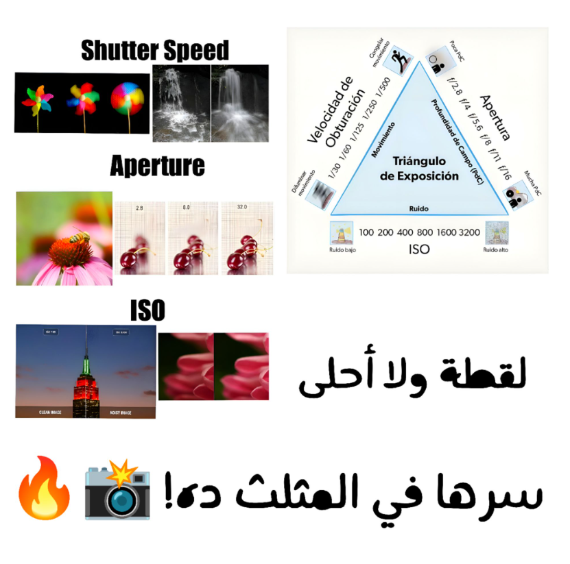 السر مش في الكاميرا نفسها… السر في إزاي بتتحكم في المثلث التعريضي: Shutter Speed – Aperture – ISO.