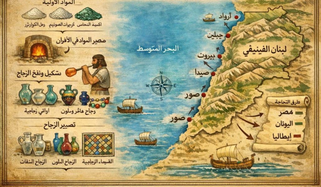حين حوّل الفينيقيون الرمل إلى نور… صناعة الزجاج في شواطئ صور وصيدون، وُلد سرٌّ صغير… لكنه غيّر العالم