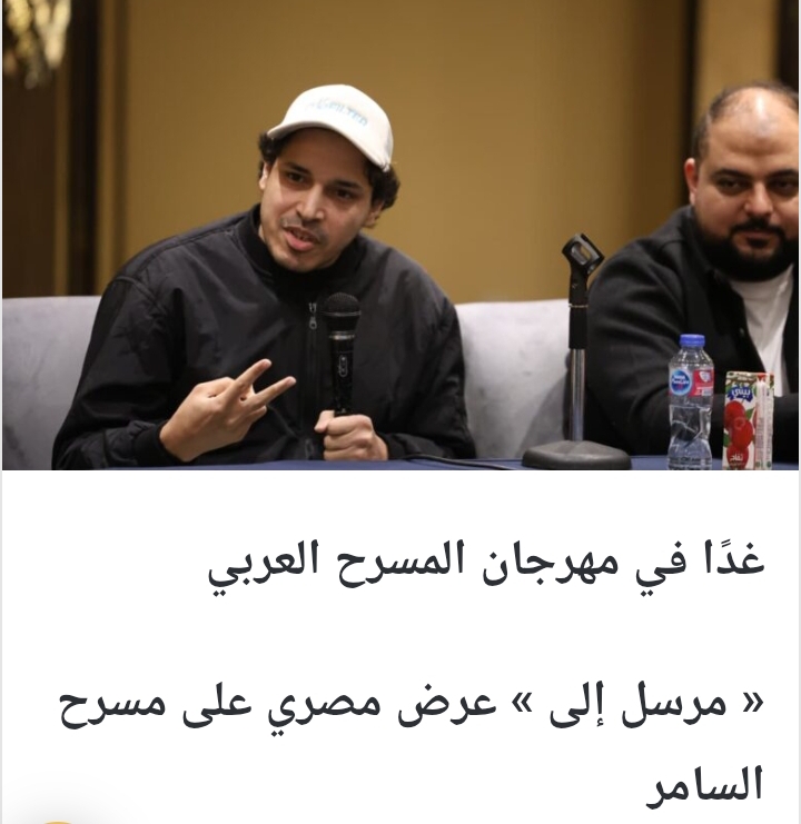 مرسل إلى » عرض مصري على مسرح السامر التاريخ يعيد نفسه، وأن أحداث الماضي تتكرر بصور وأشكال مختلفة. واختتم حديثه مستبشرًا، حيث استعاد ذاكرة مشاركته السابقة في مسابقة التأليف بـ الهيئة العربية للمسرح (الدورة العاشرة) والتي حصد فيها المركز الأول على غير توقعه، ويرى أن السيناريو ذاته يتكرر الآن مع عرض “مرسل إلي”، مما يملؤه بالتفاؤل تجاه مستقبله.ومن جانبه، أكد عز حلمي، مهندس إضاءة العرض ، أن محمد فرج لا يبخل بأي جهد في عمله، ولا يقصّر مطلقًا في حق فريقه، مشددًا على أن التعاون معه قائم على الالتزام والاحترام المتبادل، وهو ما ينعكس بوضوح على روح العرض ونتيجته النهائية. قال الممثل محمد سليمان، إن بدايته مع المسرح كانت من خلال مسرح المدرسة، قبل أن تتطور تجربته تدريجيًا داخل منظومة الثقافة الجماهيرية، مشيرًا إلى أن هذا العمل يُعد التجربة الثامنة أو التاسعة له ضمن عروض الثقافة الجماهيرية، والرابعة مع الفرقة نفسها.وأوضح سليمان أن العرض حقق نجاحًا متصاعدًا منذ مشاركته في المهرجان الإقليمي، ثم المهرجان الختامي، فالمهرجان القومي، وصولًا إلى مشاركته الحالية في مهرجان المسرح العربي، مؤكدًا أن كل محطة كانت تشهد إضافة جديدة وتطويرًا على مستوى الأداء والرؤية.وأضاف أن فريق العمل يحرص في كل مرة على مراجعة التجربة والبناء عليها، بما يضمن نضج العرض واستمراره، معربًا عن أمله في أن يفرض العرض نفسه بقوة داخل مهرجان المسرح العربي، ويحقق صدى يليق بالمجهود المبذول فيه. وطرح الإعلامي عبد الستار ناجي رؤية داعمة لجيل الشباب المشارك في هذه الدورة، معتبرًا أنها تبشّر بظهور طاقات مسرحية جديدة، رغم الإشكاليات الصعبة التي تعانيها الفرق المسرحية، خصوصًا ما يتعلق بضعف الإمكانات والميزانيات.وأشار إلى أن مثل هذه التجارب الشابة، التي تُنجز أعمالها في ظروف إنتاجية معقدة، تستحق آليات دعم أكثر فاعلية، مقترحًا إنشاء صندوق دعم تابع للهيئة العربية للمسرح، يُخصص لمساندة المشاريع المسرحية الشابة، خاصة في المسارح التي تعمل بميزانيات محدودة.وضرب مثالًا بتجارب صناديق دعم الأعمال السينمائية في فرنسا و قطر و السعودية، التي أسهمت في إتاحة الفرصة لمخرجين شباب لتقديم تجارب نوعية، رغم محدودية الموارد، مؤكدًا أن اعتماد نموذج مشابه في المسرح من شأنه أن يخلق استدامة حقيقية للتجارب الجديدة، ويمنحها فرصة التطور والاستمرار. الدورة السادسة عشرة لمهرجان المسرح العربي تنظمها الهيئة العربية للمسرح بالتعاون مع وزارة الثقافة المصرية، خلال الفترة من 10 إلى 16 يناير الجاري.#اعلام الهيئة العربية للمسرح#مجلة ايليت فوتو ارت.