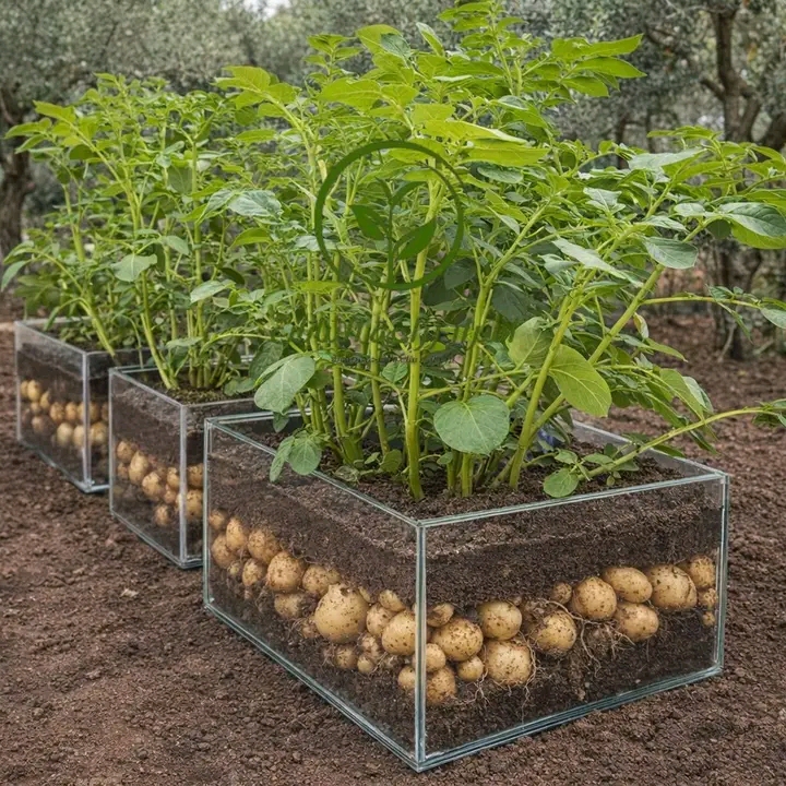 طريقة فخمة لزراعة البطاطا ونتائجها ناجحة بنسبة 100% .. وثمارها كبيرة !!زراعة البطاطا في الصناديق الزجاجية فكرة مبتكرة تجمع بين الجمال والعملية، وتناسب المساحات الصغيرة أو الحدائق المنزلية. لنجاحها، يُنصح باتباع الخطوات التالية:=======* اختيار الصندوق المناسب:استخدم صناديق زجاجية متينة بعمق لا يقل عن 30 سم، لتوفير مساحة كافية لنمو الجذور والثمار. تأكد من وجود فتحات صغيرة في الأسفل لتصريف الماء الزائد.* تحضير التربة:امزج تربة زراعية خفيفة مع سماد عضوي ورمل بنسبة متوازنة، لتحسين التهوية والصرف. ضع طبقة من الحصى في القاع لتجنب تجمع الماء.* زراعة البطاطا:اختر درنات بطاطا سليمة تحتوي على براعم صغيرة، وازرعها على عمق 10–15 سم داخل التربة. اترك مسافة بين كل درنة وأخرى لتتسع للنمو.* الري والعناية:اسقِ التربة بانتظام دون إغراقها، وحافظ على رطوبة معتدلة. ضع الصناديق في مكان مشمس جزئياً، فالبطاطا تحتاج إلى ضوء كافٍ ولكن لا تحب الحرارة المفرطة.* البيئة المحيطة:وجود أشجار الزيتون في الخلفية كما في الصورة يخلق توازنًا بيئيًا جميلًا، إذ توفر ظلاً خفيفًا وتزيد من رطوبة الجو بطريقة طبيعية.بعد نحو 10 إلى 12 أسبوعًا، ستبدأ البطاطا بالظهور داخل الزجاج، لتمنحك مشهدًا رائعًا يجمع بين الزراعة والتعليم والجمال البصري#الزراعة الحديثة#مجلة ايليت فوتو ارت…