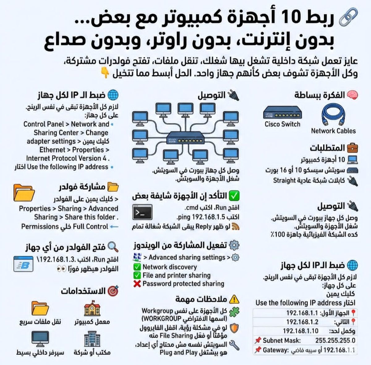 🚀 ازاي تربط 10 أجهزة كمبيوتر مع بعض؟