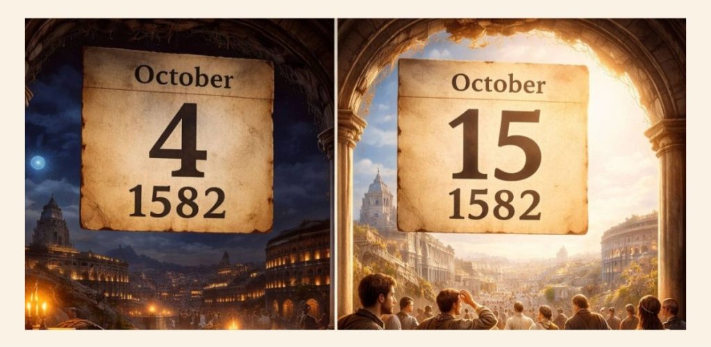 في عام 1582، شهد العالم الغربي حدثا فريدا وغريبا، حيث اختفت 10 أيام كاملة من التاريخ فجأة! نام سكان روما مساء الخميس 4 أكتوبر، واستيقظوا صباح الجمعة 15 أكتوبر، وكأن التاريخ نفسه أخذ قفزة زمنية. لكن هذه القفزة لم تكن خيالية، بل كانت نتيجة إصلاح علمي دقيق لتقويم كان متأخرا عن الواقع الفلكي.