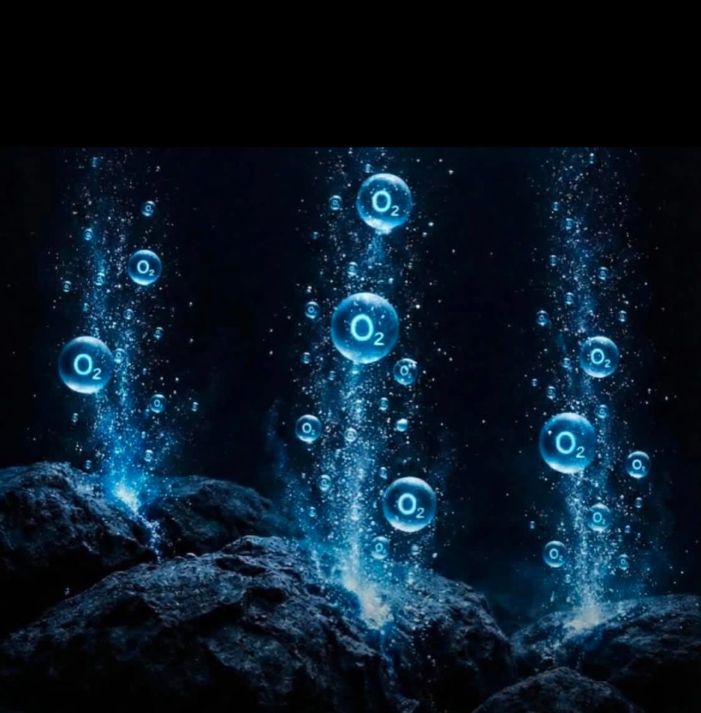 العلماء يعتقدون أنهم وجدوا الإجابة في قاع المحيط نفسه. تشير الأدلة إلى أن عقيدات معدنية غنية (تشبه البطاريات الطبيعية) موجودة على القاع، تقوم بعملية كيميائية كهربائية تحلل مياه البحر وتفصل الأكسجين عنها. إنه حرفياً “أكسجين جيولوجي” نابع من صخور الأرض لا من كائناتها الحية.