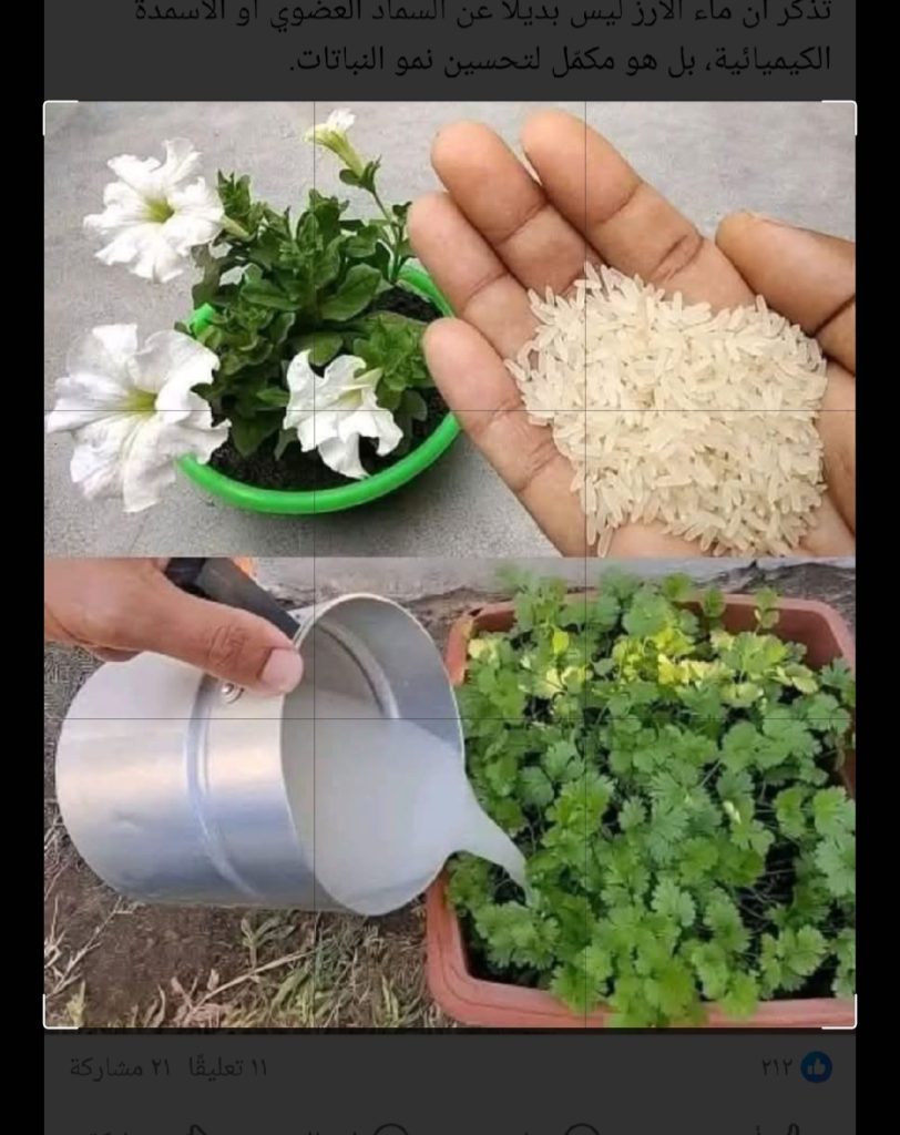 عناصر غذائية يحويها ماء الأرز.لنمو النباتات مثل النيتروجين والفوسفور والبوتاسيوم