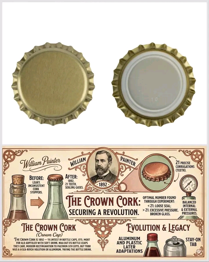 هل سألت نفسك يوماً.. لماذا يحتوي غطاء زجاجة المياه الغازية على 21 ثنية بالضبط؟ 🤔هذا الغطاء الصغير الذي نلقيه في القمامة دون تفكير، هو في الحقيقة أحد أعظم الابتكارات التي أنقذت صناعة المشروبات في العالم!📅 الزمان: عام 1892 م.👤 البطل: المخترع الأمريكي ويليام بينتر (William Painter).الحكاية باختصار:قبل هذا الاختراع، كانت المشروبات الغازية تُسد بالخشب أو الفلين، والنتيجة؟ “الصودا” كانت تطير، والطعم يفسد، وأحياناً الزجاجة تنفجر في وجهك! 💥لماذا يسمى بالغطاء التاجي (Crown Cork)؟لأنه عندما يُقلب يشبه تاج الملوك. والمثير للدهشة أن “بينتر” صممه بـ 24 ثنية في البداية، لكن بعد تجارب طويلة، اكتشف العلماء أن الرقم المثالي هو 21 ثنية فقط.لماذا 21 تحديداً؟ ⚙️• لو زاد العدد عن 21: سيصبح الغطاء قوياً جداً ومن الصعب فتحه (قد يكسر عنق الزجاجة).• لو قلّ العدد عن 21: سيكون الغطاء ضعيفاً ولن يتحمل ضغط الغازات بداخله.معادلة الضغط:المعادلة البسيطة التي تحكم هذا الغطاء تعتمد على توزيع الضغط P على مساحة السطح A لضمان ثبات الغطاء ضد قوة الغازات الداخلية F:F=P x Aوبفضل هذه الـ 21 ثنية، يتم توزيع القوة بالتساوي فلا يتسرب غاز ولا تنكسر الزجاجة.لولا هذا الغطاء البسيط، لما استمتعت بطعم “الصودا” الفوارة اليوم#حصاد الصخيرات تمارة#مجلة ايليت فوتو ارت..