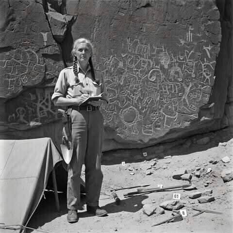 الدكتورة فرانسيس “فرانكي لانغ”و البالغة من العمر 50 عامًا والحاصلة على دكتوراه في الأنثروبولوجيا من جامعة بيركلي، فقدت منصبها كأمينة متحف في الموجة الأخيرة من تخفيضات الكساد الكبير، نتيجةً لتحيزٍ خفيّ ضدّ مديرات المتاحف.👐💰 أنفقت كامل ميراثها على 300 فدان من صحراء مرتفعة نائية تضمّ ملاجئ صخرية لقبيلة بايوت لم تمسها يد الإنسان وعاشت في كوخٍ بسيط من القماش والحجر كانت تُعزّزه كل ربيع، وقضت أيامها في تنظيف الغبار عن النقوش الصخرية وفهرسة شظايا السلال وكانت ترتدي ملابس كاكي، وتحمل مجرفة ودفتر ملاحظات ومسدس كولت عيار 45 طويل الماسورة “للحماية من الأفاعي الجرسية والأشباح التي كانت تمازح بشأنها”👐👤 في عام 1937م وصل مسّاحٌ تابعٌ لخط سكة حديد ومعه أوراق إخلاء فأعطته جولةً استغرقت ساعتين في مخابئ صيد عمرها 800 عام بينما كانت تشحذ مجرفتها على حجر الشحذ مزّق الأوراق في الحال وأخذ حفنة من شظايا الفخار، ثم شهد لاحقًا لصالحها وساعدت خرائط مواقعها في حماية أولى المناطق الأثرية في الحوض العظيم ولم تنشر سوى ثلاث أوراق بحثية قصيرة جميعها غير موقعة حتى عام 1978م._________#هالووين العالم القديم 𝖍𝖆𝙇𝙇𝖔𝙬𝖊𝖊𝖓 # مجلة ايليت فوتو ارت.