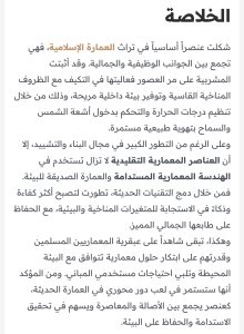 وهكذا، تبقى شاهداً على عبقرية المعماريين المسلمين وقدرتهم على ابتكار حلول معمارية تتوافق مع البيئة المحيطة وتلبي احتياجات مستخدمي المباني. ومن المؤكد أنها ستستمر في لعب دور محوري في العمارة الحديثة كعنصر يجمع بين الأصالة والمعاصرة ويسهم في تحقيق الاستدامة والحفاظ على البيئة.