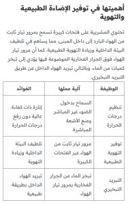 أهميتها في توفير الإضاءة الطبيعية والتهوية: