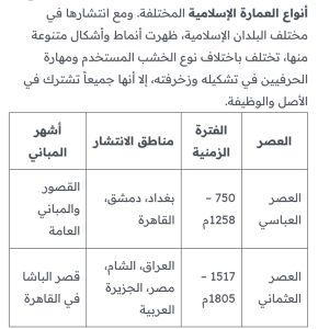 أنواع العمارة الإسلامية المختلفة. ومع انتشارها في مختلف البلدان الإسلامية، ظهرت أنماط وأشكال متنوعة منها، تختلف باختلاف نوع الخشب المستخدم ومهارة الحرفيين في تشكيله وزخرفته، إلا أنها جميعاً تشترك في الأصل والوظيفة.
