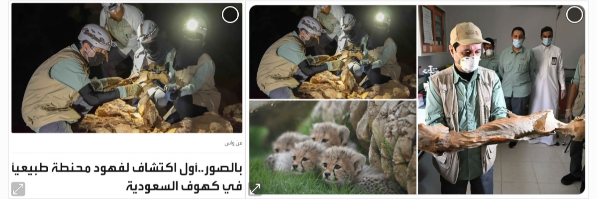 في اكتشاف هو الأول من نوعه، عثر على 7 فهود محنطة طبيعياً في كهوف شمال السعودية. فقد نشرت مجلة Nature:Communications Earth &Environment ورقة علمية للمركز الوطني لتنمية الحياة الفطرية تناولت توثيق أول اكتشاف علمي لفهود محنطة طبيعياً داخل كهوف بالمملكة، وتحليل دلالاته العلمية في دعم برامج إعادة توطين الفهد.