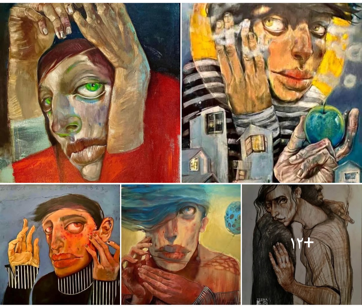 تجسّد زينة مصطفى سليم هذا الصراع عبر جسد يبدو محاصرًا داخل فضاءات ضيقة أو مغلقة، الوضعيات المنحنية لا تشير إلى ضعف فطري بل إلى ثقل تاريخي متراكم، التعب هنا ليس جسديًا فقط بل نفسي ووجودي، المرأة تحمل عبء الذاكرة وعبء الصمت وعبء الأدوار المفروضة، النظرات الشاردة لا تعبّر عن استسلام بل عن اغتراب داخلي عميق يجعل الجسد ساحة مواجهة مع واقع قاس.