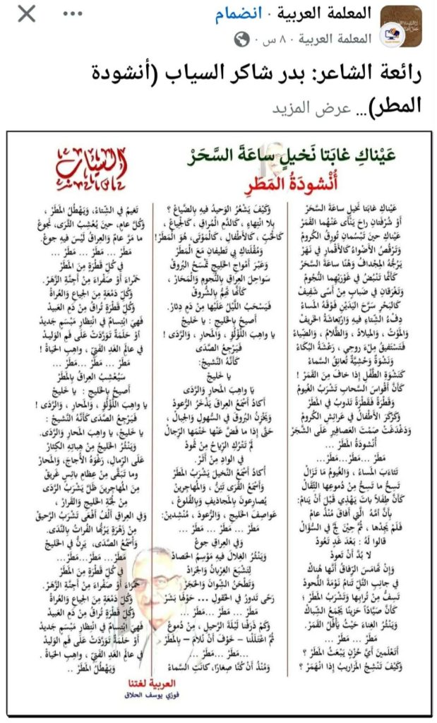 رائعة الشاعر: بدر شاكر السياب (أنشودة المطر)