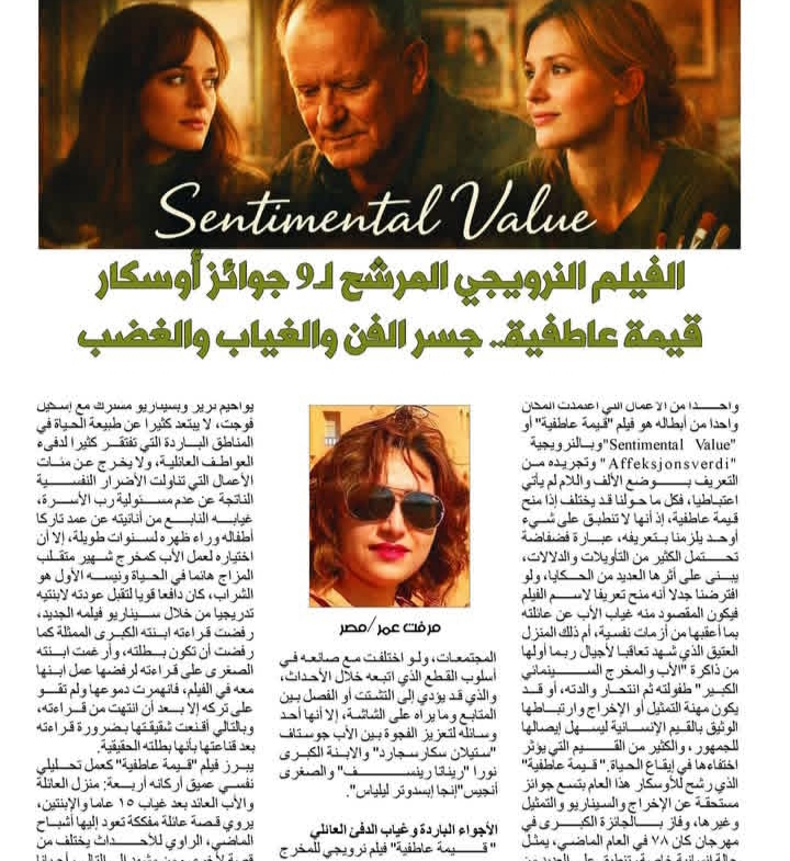 فيلم “قيمة عاطفية ” يشق طريقه الى المهرجانات العالمية والجوائز بقوة ، وهو يقف على اعتاب القائمة القصيرة المرشحة لمسابقة الاوسكار . الناقدة السينمائية مرفت عمر وضعته في مجهر الناقد ونشرت موضوعاَ عنه في العدد 27 من مجلة سومر السينمائي لشهر اذار 2026 .لقراءة الموضوع وتصفح العدد اتبع الرابط التالي :https://drive.google.com/file/d/1eEzLabR_bXKpoGIXap997nDSoyQ0hZKM/view#فيديو، #أفلام، #فيديوهات، #ممثل، #ممثلين، #ممثلة، #ممثلات، #سينما، #سيما، #هوليوود، #فيلم_اليوم، #رعب، #رومانس، #كوميدي، #أكشن، #خيال_علمي، #وثائقي، #تاريخي، #مهرجانات_سينمائية، #سينما_العالم، #سينما_مختلفة، #تقارير_فنية، #مراجعات_أفلام، #بلاتوهات، #نجوم، #أخبار، #ذاكرة_العالم_أمام_عينيك_سينما اسيا _ سينما افريقيا# #مسلسلات تلفزيونية #فنون تشكيلة – ارت House Of Culture & Art Washington # سوريا#السعودية #.#فيلم، #فيديو، #أفلام، #فيديوهات، #ممثل، #ممثلين، #ممثلة، #ممثلات، #سينما، #سيما، #هوليوود، #فيلم_اليوم، #رعب، #رومانس، #كوميدي، #أكشن، #خيال_علمي، #وثائقي، #تاريخي، #مهرجانات_سينمائية، #سينما_العالم، #سينما_مختلفة، #تقارير_فنية، #مراجعات_أفلام، #بلاتوهات، #نجوم، #أخبار، #ذاكرة_العالم_أمام_عينيك: #الذاكرة العراقية #تاركوفسكي#المغرب # تونس# الجزائر # مصر# السودان# سوريا##مهرجان_العراق #مهرجان_سينمائي #سينما_العراق #فن_عراقي #ثقافة_عراقية #موسيقى_عراقية #عراقيون_مبدعون #العرب_في_أوروبا #ArabsInEurope #IraqisEU #Iraqis_in_Europe #فيلم، #فيديو، #أفلام، #فيديوهات، #ممثل، #ممثلين، #ممثلة، #ممثلات، #سينما، #سيما، #هوليوود، #فيلم_اليوم، #رعب، #رومانس، #كوميدي، #أكشن، #خيال_علمي، #وثائقي، #تاريخي، #مهرجانات_سينمائية، #سينما_العالم، #سينما_مختلفة، #تقارير_فنية، #مراجعات_أفلام، #بلاتوهات، #نجوم، #أخبار، #ذاكرة_العالم_أمام_عينيك# مجلة اسليت فوتو ارت.
