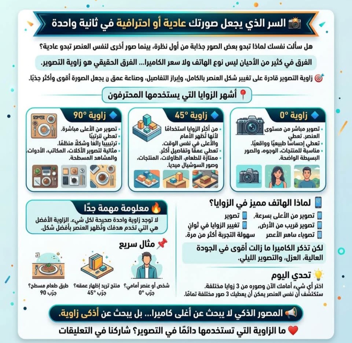❤️ ما الزاوية التي تستخدمها دائمًا في التصوير؟ شاركنا في التعليقات