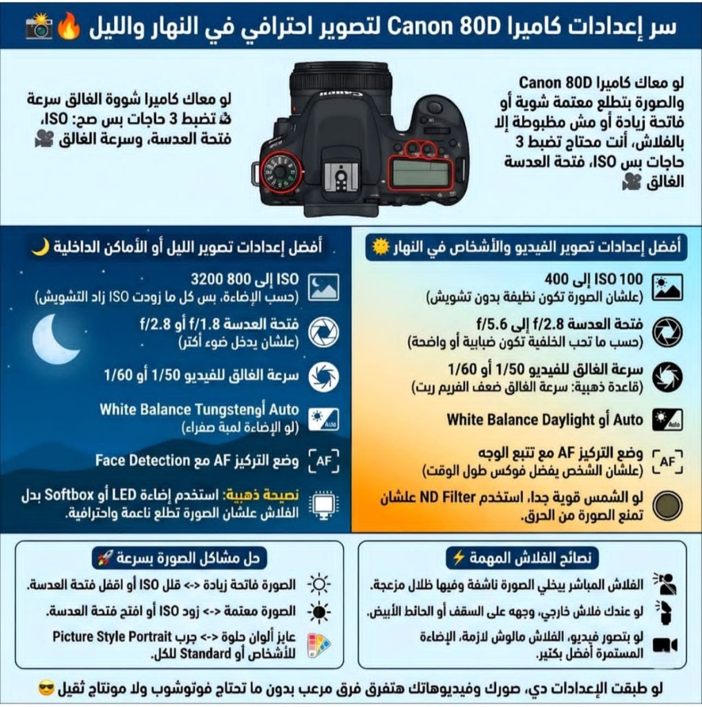 إعدادات Canon 80D اللي هتخليك تصور زي المحترفين في النهار والليل 📸🔥