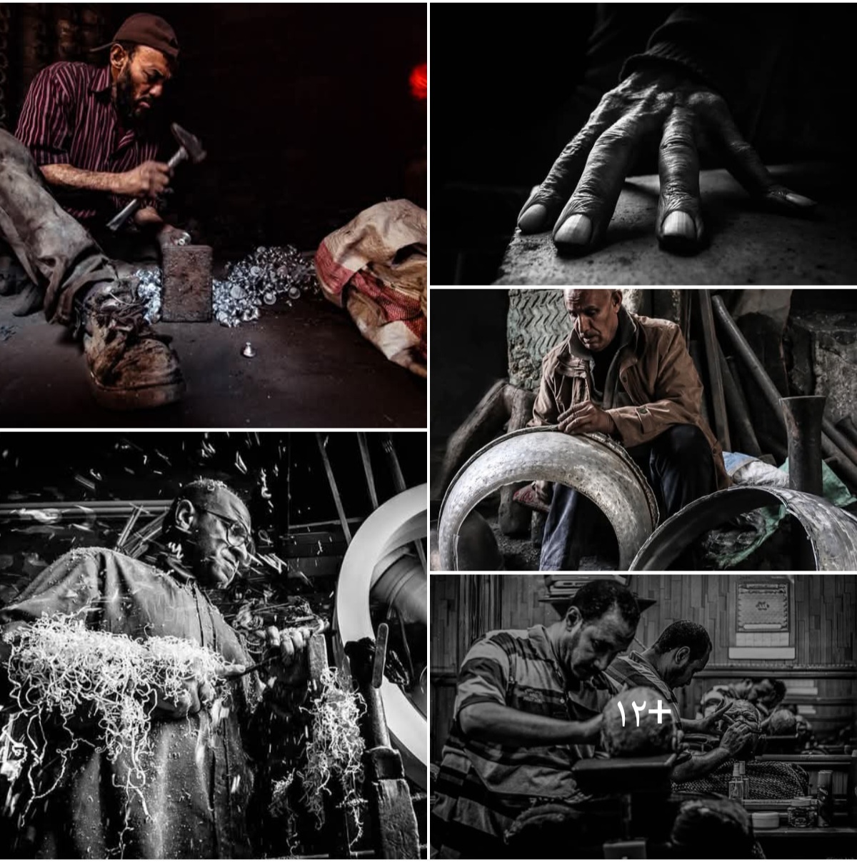 تركز ايمان عرب على الايادي بشكل مكثف كونها العنصر الرئيسي في جسم الانسان والاهم في تجسيده للعمل . كما نرى . وتؤكده لنا صورة الخراط والصياد . الايادي متسخة من جراء العمل . والتعامل المباشر مع المواد بهمة عالية .