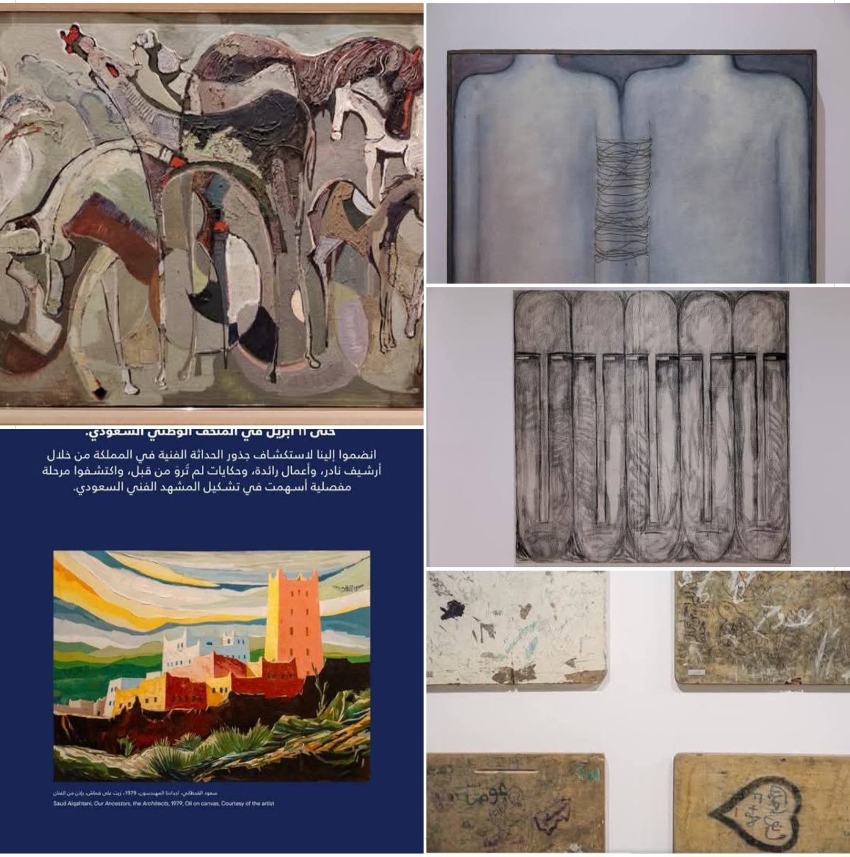 يُنصح بزيارة معرض بدايات في المتحف الوطني السعودي بالرياض المستمر حتى ١١ أبريل، لمشاهدة الأعمال في مرحلة التأسيس والنشأة وأرشيفها.