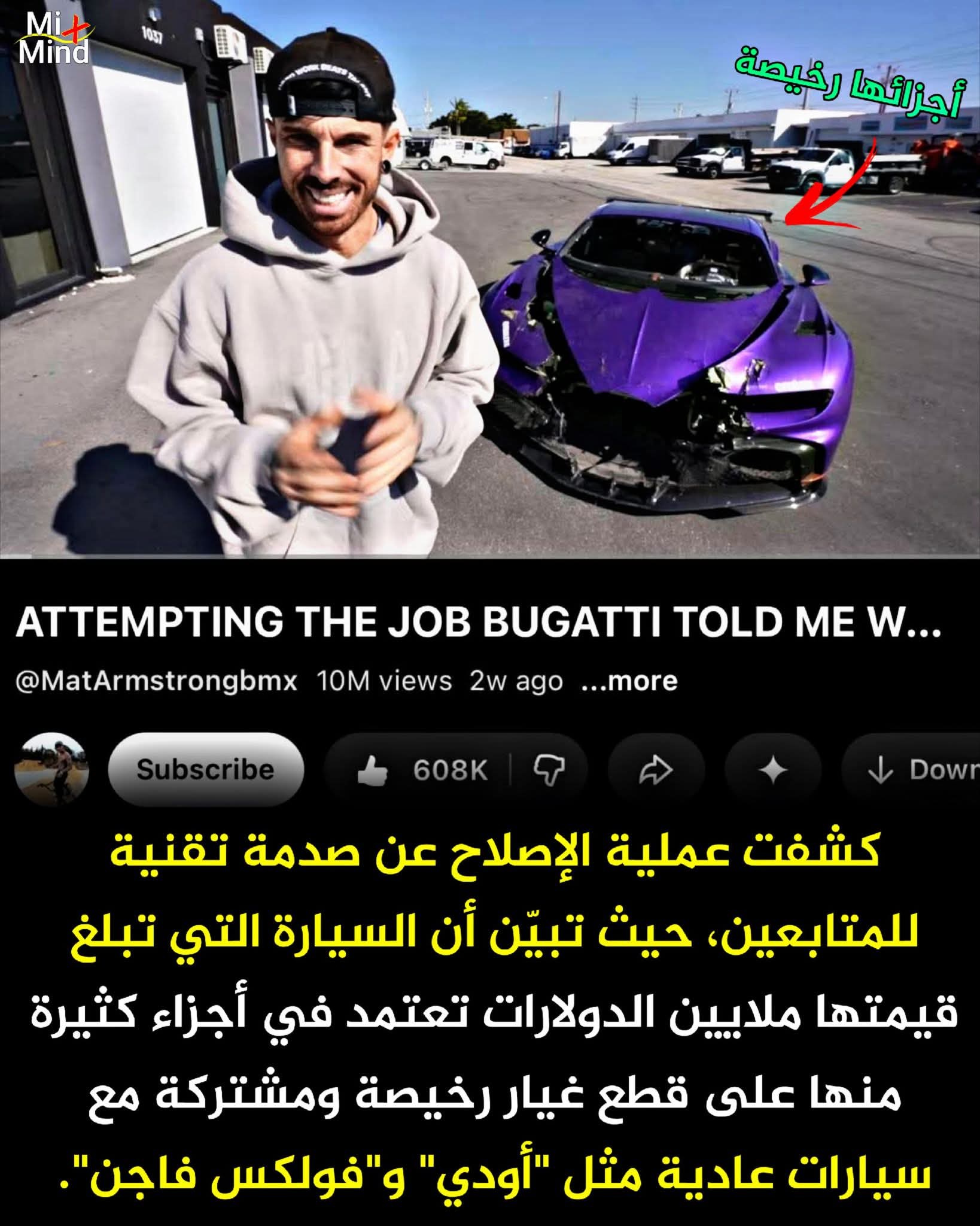 من أمتع وأقوى ما يمكن مشاهدته على منصة يوتيوب حالياً هو هذا التحدي الذي كسر كبرياء كبرى شركات السيارات العالمية. تخيل أن يقوم المدير التنفيذي لشركة “بوغاتي” (Bugatti) بالسخرية منك في فيديو، مؤكداً أنه من المستحيل تقنياً “فصل” هيكل السيارة لإصلاحها، مدعياً أن هناك مكانين فقط في العالم بأسره يمتلكان الأدوات والخبرة اللازمة لهذا التعقيد الهندسي.. فترد عليه بكل بساطة وتواضع بفيديو مدته 40 دقيقة يوثق عملية تفكيك سيارة “بوغاتي شيرون” داخل مرآب منزلي (كراج) وبأدوات عادية!هذا الموقف شكل ضربة قوية لسمعة بوغاتي؛ فسيارة ثمنها 6 ملايين دولار بات لها شرح مفصل يوضح كيفية فكها وتبديل قطعها بسهولة تشبه التعامل مع سيارة اقتصادية رخيصة.بداية القصة: الحادث والرفضتبدأ الحكاية مع مواطن أمريكي يدعى “أليكس”، يمتلك سيارة بوغاتي شيرون تعرضت لحادث سير. عندما تواصل مع الشركة لطلب قطع الغيار اللازمة، قوبل طلبه بالرفض القاطع. أخبرته الشركة أن قطع الغيار “سرية” ومحمية، ويتعين عليه شحن السيارة إلى فرنسا ليتم إصلاحها في مصانعهم، بتقدير أولي لتكلفة الإصلاح بلغت 1.7 مليون دولار.رفض أليكس هذا الاحتكار وخشي أن ترتفع التكلفة أكثر بمجرد وصول السيارة إلى فرنسا. فدخل في “حرب” علنية مع الشركة عبر وسائل التواصل الاجتماعي، لدرجة أنه صرح بأن السيارة رغم سرعتها الفائقة، إلا أنها تفتقد للفخامة والخصوصية التي تبرر سعرها، مشبهاً بعض تفاصيلها بسيارة “تويوتا كورولا”. تحولت القصة إلى “تريند” عالمي، ووصل الأمر بشركة بوغاتي إلى التعليق بسخرية واستهزاء من محاولاته.دخول “مات أرمسترونج” على الخطاستعان أليكس بصانع المحتوى والميكانيكي الشهير “مات أرمسترونج” (Mat Armstrong)، المعروف بقدرته الخارقة على إحياء السيارات المدمرة.بدأ التحدي بإصلاح المقدمة وهيكل “الكاربون فايبر” المتضرر، بالإضافة إلى أنظمة الوسائد الهوائية (Airbags) التي رفضت بوغاتي تزويدهم بها. وهنا كانت المفاجأة الصادمة أثناء التفكيك:> اكتشف الفريق أن معظم القطع الداخلية التي أزيلت ليست “حصرية” لبوغاتي كما يروجون، بل هي قطع مشتركة موجودة في سيارات “أودي” و”فولكس فاجن” وبأسعار زهيدة مقارنة بسعر السيارة الفلكي!> التحدي الأكبر: فصل الهيكلواجه الفريق مشكلة معقدة في ناقل الحركة (الفتيس) تستوجب “فصل” الجزء الأمامي للسيارة عن الجزء الخلفي للوصول إليه. وهنا خرج مدير بوغاتي مجدداً ليؤكد استحالة الأمر خارج مراكزهم المتخصصة.لكن مات، وبمساعدة والده وأدوات المرآب المتوفرة لديه، استطاع بالفعل شطر السيارة إلى نصفين وبدأ عملية الإصلاح بنجاح، محطماً أسطورة “التعقيد المستحيل” التي كانت تتغنى بها الشركة.تضامن عالمي ضد الاحتكارتحولت القصة إلى قضية رأي عام، حيث تضامن المتابعون (وخاصة الأمريكيين) مع مات وأليكس. بدأ مهندسون وموظفون سابقون في شركة بوغاتي بتزويدهم سراً بالمعلومات التقنية والخرائط الهندسية اللازمة للإصلاح، في مشهد يجسد اتحاد “الهواة” لكسر احتكار الشركات الكبرى.Mind Mix #قصص#حكايات#واقع#عبرة#ثقافة#معلومات#اكسبلور#ترند#فولو#مشاهير#عرب#explore #foryou #fyp #trending #viral مجلة ايليت فوتو ارت.