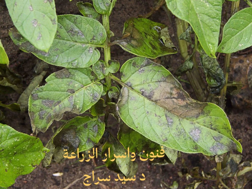يعتبر هذا المرض من أخطر الأمراض التى تصيب البطاطس والطماطم خاصة فى العروة الشتوية حيث تتوافر الحرارة المنخفضة والرطوبة العالية فى ظروف مثلى لنمو الفطر حيث يصيب المرض الأوراق والسيقان ويقضى على المحصول فى الحقل خلال أيام قليلة كما يصيب هذا المرض محصول الطماطم وبعض نباتات العائلة الباذنجانية أيضاً لذلك ينصح دائماً بعدم مجاورة زراعات البطاطس والطماطم معا او تعاقب هذه المحاصيل مع بعضها لبعض** مصادر العدوى :تعتبر الدرنات المصابة هى المصدر الرئيسى للعدوى والتى يعيش عليها الفطر من موسم لآخر كما تشكل الدرنات المصابة التى تركت فى الحقل من الموسم السابق ك بقايا المحصول ويكون مصدراً هاماً للعدوى فعند زراعة المحصول الجديد تنبت هى الأخرى وتعطى نباتات مصابة تمثل مصدراً للعدوى كما تعتبر بقايا العرش القديم مصدراً آخر للعدوى وايضا انخفاض الحرارة وارتفاع الرطوبة** الأعراض :* على المجموع الخضرى :تبدأ الأعراض بظهور بقع ومساحات مائية على قمم وحواف الأوراق وعند انخفاض الحرارة وارتفاع الرطوبة تتحول إلي اللون البنى أو الأسودتشبه أعراض ضرر الصقيع ( مع ظهور هالة صفراء حولها البقع وعند تقدم الإصابة يظهر زغب لونه رمادى على السطح السفلى للأوراق مقابل المساحات المصابة وهو عبارة عن حوامل فطرية جرثومية التى تخرج من ثغور النباتات ويختفى هذا الزغب فى الظروف الجافة ويمكن أن تصاب أعناق الأوراق والسيقان بظهور نفس البقع المسودة ثم الزغب وفى النهاية يموت العرش بأكمله * علـى الدرنــات :تظهر مناطق منخفضة بنية غير منتظمة الشكل على السطح الخارجى للدرنة ( شكل العفن ) حيث يمتد هذا العفن تحت بشرة الدرنة وباتجاه لب الدرنة بشكل غير منتظم ولكن لمسافات قصيرة وتحدث الإصابة للدرنات أثناء موسم النمو عندما تغسل الجراثيم من على الأوراق إلى التربة ومنها إلى الدرنات خاصة القريبة من سطح التربة أو الدرنات المكشوفة أو أثناء التقليع عندما تلامس الدرنات العرش الملوث بالجراثيم خاصة إذا كانت الدرنات مبتلة أو المجروحة وقد تصاب الدرنات أثناء التخزين فى مخزن ردئ التهوية ** المكافحة أولاً : القضاء على مصادر العدوى ١- باستعمال الدرنات السليمة والخالية من الإصابة وقت الزراعة ٢- زراعة الأصناف المقاومة ٣- إزالة بقايا العرش القديم ٤- عدم زراعة البطاطس بجوار الطماطم أو العكس ٥- إزالة النباتات المصابة خلال الموسم وحرقها ٦- اتباع دورة زراعية يراعى فيها عدم زراعة العوائل فى عروات متتالية ثانياً : العناية بالعمليات الزراعية ١- تقليب الأرض وحرثها وتنعيمها لتقليل رطوبة التربة وتهويتها ٢- الزراعة على مسافات مناسبة حتى لا تتزاحم النباتات وتزداد الرطوبة ٣- العناية بالتسميد المتوازن لتجنب نقص العناصر او زيادة التسميد الازوتى التى تساعد على تطور المرض و تزيد قابلية النبات للإصابة بالامراض٤- العناية باتباع برامج المكافحة للآفات والامراض حتى لا يضعف النبات ٥- العناية بعمليات الحصاد والتخزين وألا يتم تخزين الدرنات إلا بعد العلاج التجفيفى تحياتي لحضراتكم جميعاً د سيد سراج استشارىالمحاصيل الزراعية مكافحة الآفات الزراعيةمقاومة الأمراض النباتية تغذية وتسميدالمحاصيل تحياتي وتقديري لكل الداعمين على الصفحة ولو عجبتك الصفحة ساعدنا برأيك *( فنون واسرار الزراعة )**#الزراعة #النباتات #الحدائق #الفاكهة #الخضروات #الزراعة_المحمية #الفاكهة_الاستوائية #النباتات_الطبية_والعطرية #المحاصيل_الزراعية #الزراعة_الحيوية #الامراض_والحشرات_الزراعية#السعودية #العراق #سوريا #قطر #الاردن #الامارات #الكويت #الاتحاد_الاوروبى #الولايات_المتحدة #الصين#فنون_واسرار_الزراعة_د_سيد_سراج # مجلة ايليت