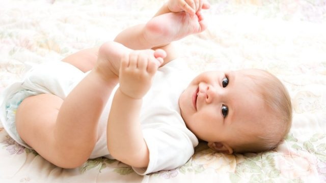 • وضع الطفل على الأرض، وجعل بطنه باتجاه الأرض