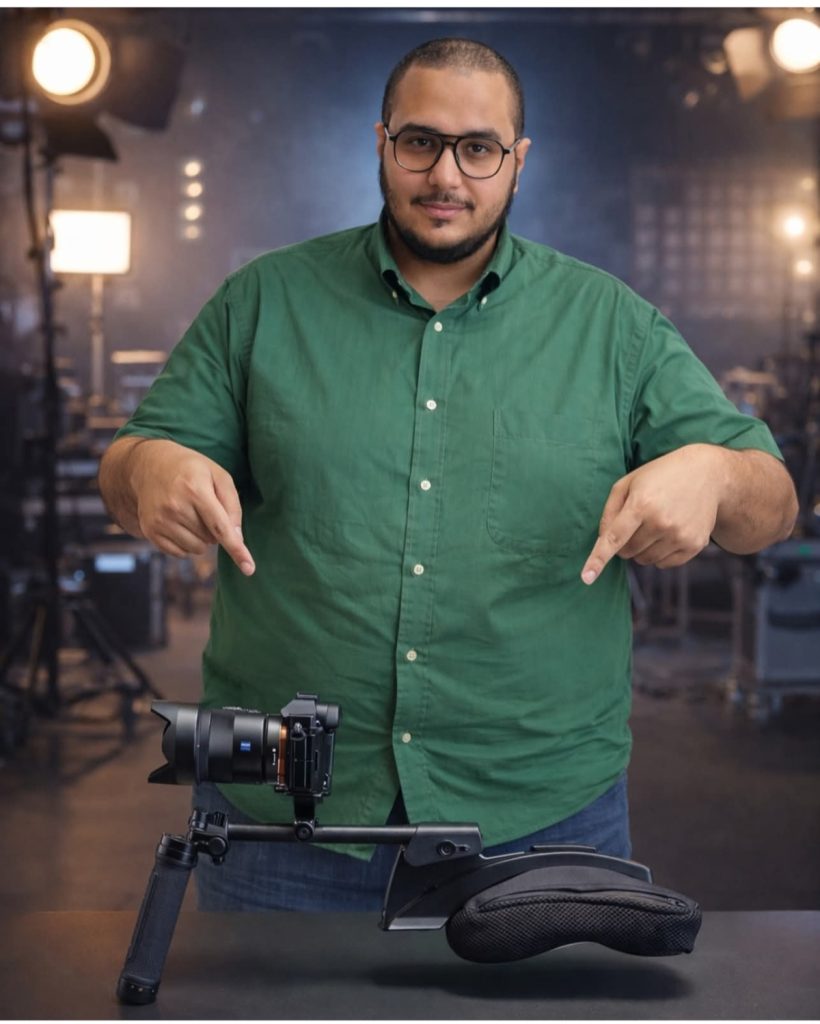 هذه تُسمّى Shoulder Rig (حامل الكاميرا على الكتف) — وهي واحدة من أهم أدوات صناع الأفلام وصنّاع المحتوى الاحترافي.