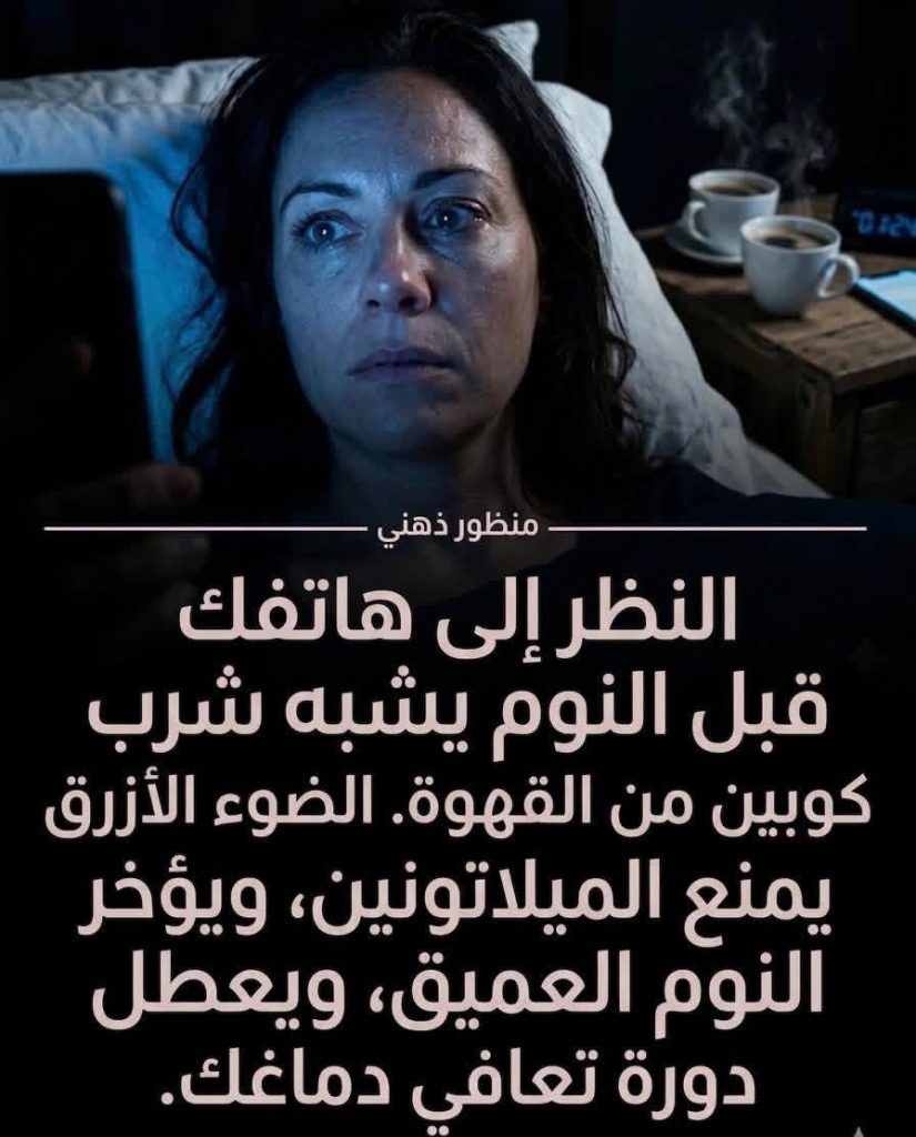 إن إضاءة هذا المستطيل الصغير في غرفتك المظلمة تعادل بيولوجياً تجرع كوبين من القهوة. هذا الضوء الأزرق الماكر يخدع أدمغتنا، فيحجب إفراز “الميلاتونين” (هرمون النوم)، وكأنه يخبر الجسد بأن النهار مستمر وأن عجلة الوقت لم تتوقف. النتيجة؟ نحن لا نؤخر النوم العميق فحسب، بل نعطل دورة التعافي الكاملة لعقولنا.