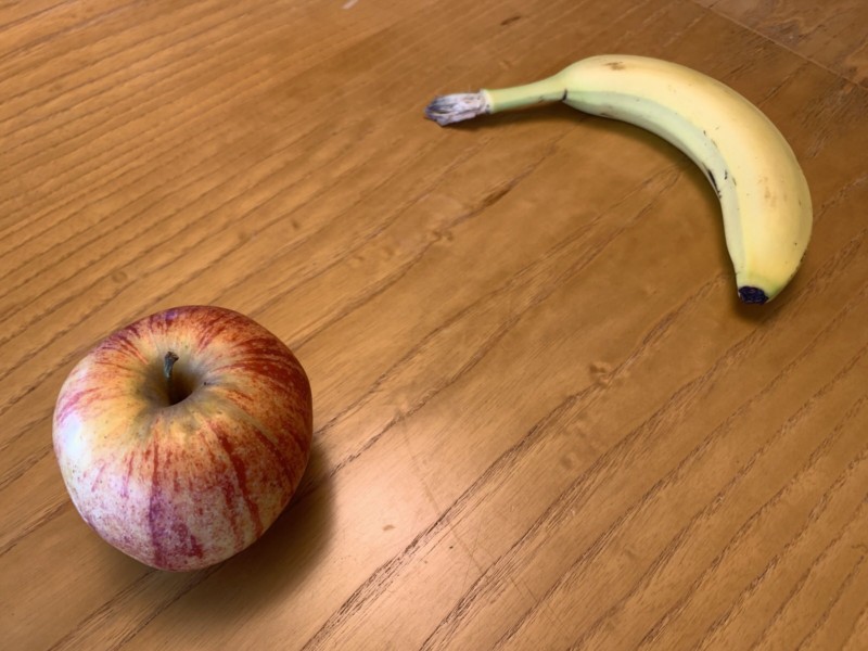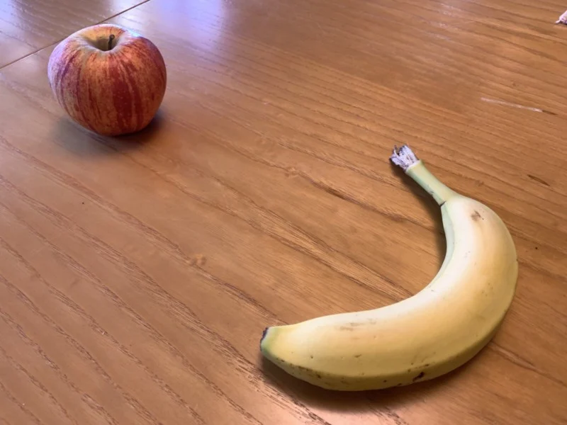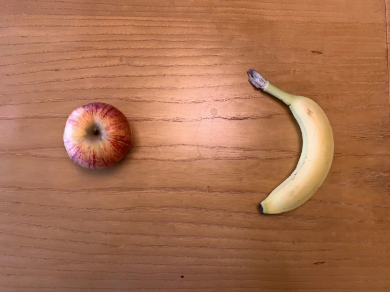غرضان موضوعان بشكل غير متناسق على طاولة.