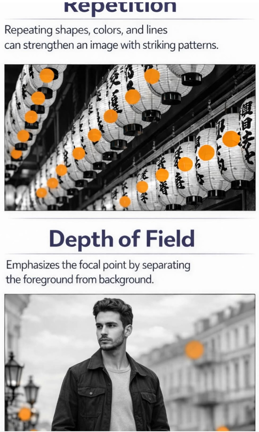 لاحظ كيف الفوانيس المتكررة صنعت Pattern بصري يقود عين المشاهد تلقائياً داخل الصورة بدون أي مجهود.