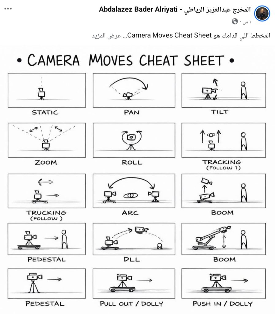 كيف نستخدم كل حركة “صح” داخل المشهد .في المخطط اللي مرفق بالمقالة قدامك هو Camera Moves Cheat Sheet ..- مشاركة المخرج: عبد العزيز الرياطي.