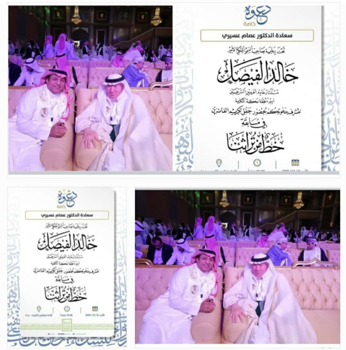 لقاء الدكتور عصام العسيري مع الخطاط عبدالرزاق خوجه بإحتفال تكريم الفائزين بالخط العربي برعاية سمو أمير مكة خالد الفيصل.