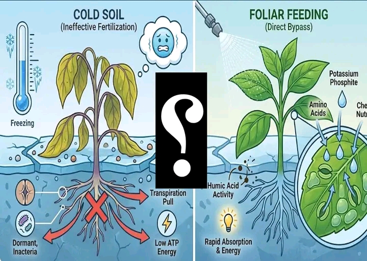 🌾 جوع في قلب الوفرة.. لماذا تموت نباتاتك رغم التسميد المكثف في البرد؟ 🌾يكافح الكثير من المزارعين هذه الأيام مع مفارقة محيرة:الأرض مليئة بالأسمدة.. لكن النبات أصفر، ضعيف، وأوراقه تتحول للون الأرجواني! 🌾❄️🌱🔬 السر العلمي وراء هذه الظاهرة (المعروفة بـ “الجوع المستتر”):❄️ 1. توقف “مضخة الامتصاص”في البرد، تنغلق مسام النبات وتتوقف عملية “النتح” – وهي القوة التي تسحب الغذاء من الجذور للأوراق. النتيجة؟ العناصر تبقى محبوسة في التربة رغم وجودها.⚡ 2. انهيار طاقة النباتامتصاص العناصر يحتاج طاقة (ATP)، والبرد يخفض إنتاج الطاقة بنسبة تصل لـ60%! النبات يصبح “مفلساً طاقياً” وغير قادر على سحب الغذاء.🦠 3. إضراب ميكروبات التربةالبكتيريا التي تحول السماد لصورة صالحة للامتصاص تدخل في “سُبات” عند انخفاض الحرارة تحت 12°م.💜 4. أزمة الفوسفور الأرجوانيأول عنصر يتأثر بالبرد هو الفوسفور – حركته تنخفض 70%! وهذا سبب التحول اللوني للأوراق.🛡️ خطة الإنقاذ العملي (إذا كان قمحك أو محاصيلك تظهر هذه الأعراض):✅ العلاج الفوري (الرش الورقي):▫️ فوسفيت البوتاسيوم: 1.5-2 مل/لتر (فسفور سريع الامتصاص)▫️ أحماض أمينية: 2-3 مل/لتر (تنقل الغذاء مباشرة للخلايا)▫️ سليكات البوتاسيوم: 2 مل/لتر (مقاومة الصقيع) طبعا ترش لوحدها⏰ الوقت المناسب: بين 10 صباحاً و2 ظهراً بعد جفاف الندى تماماً✅ علاج الجذور (مع الري):▫️ حمض الهيوميك + فولفيك: 100-150 جم/فدان▫️ مياه دافئة من باطن الأرض في ري مسائي خفيف✅ تعديل التسميد الأرضي:▫️ استخدام نترات الأمونيوم بدلاً من اليوريا في حالة انخفاض الحرارة عن 10 درجات▫️ فوسفات أحادي الأمونيوم (MAP) بدلاً من السوبر فوسفات.📌 ملخص الحل:النبات في البرد يشبه مريضاً في العناية المركزة – لا يحتاج طعاماً دسماً (تسميد أرضي مكثف) بل محاليل وريدية (رش ورقي).🌱 خبرة اليوم:إذا ظهرت على محصولك بقع أرجوانية أو اصفرار رغم التسميد، فالحل ليس في “شكارة سماد إضافية”، بل في رشة طاقة وعناصر سريعة المفعول. #حماية_النباتات #البرد #الزراعة_الذكية #القمح #الصقيع #تسميد_ورقي #طوبة #شتاء # مجلة ايليت فوتو ارت
