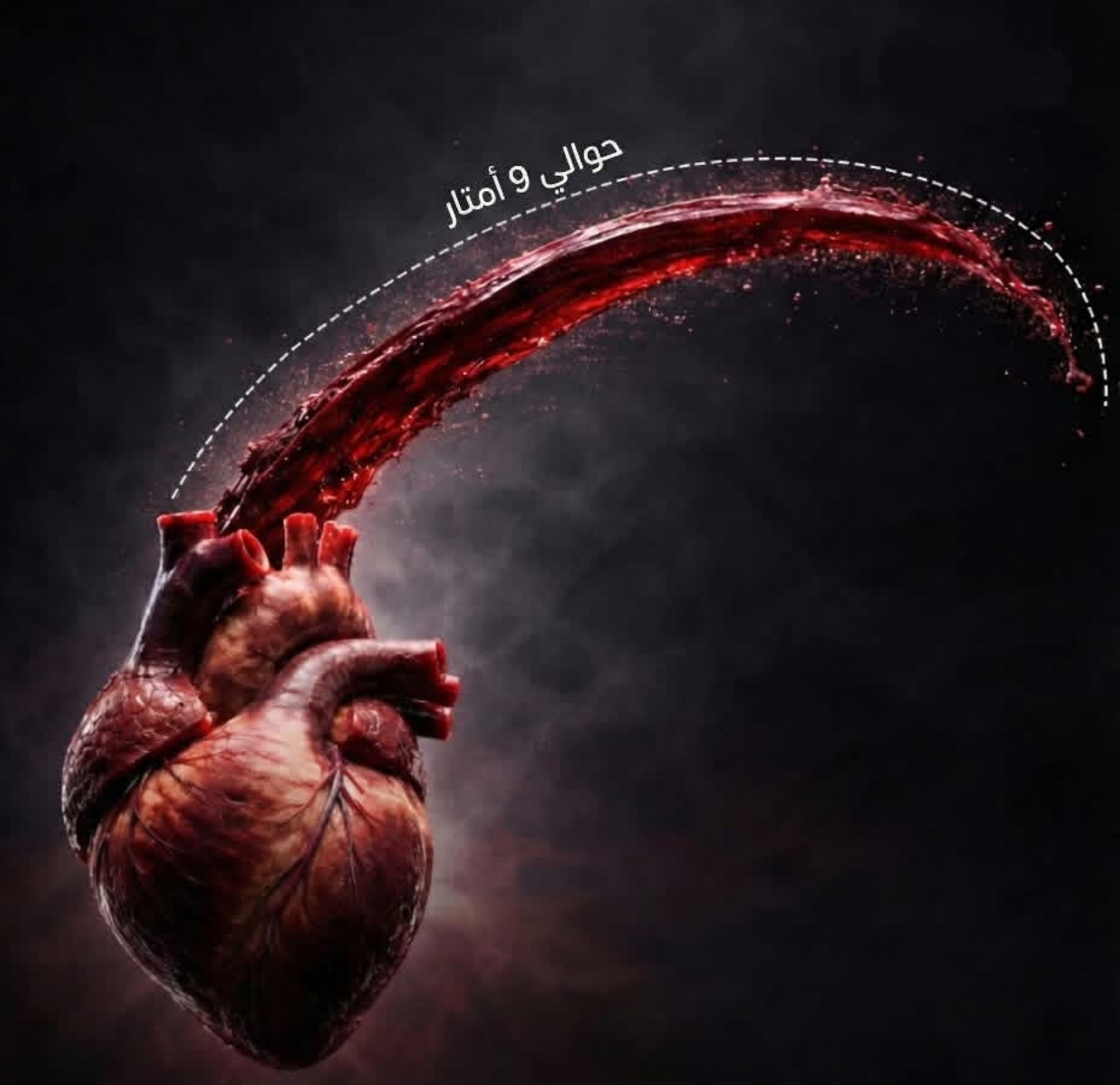الصورة المرفقة ليست مجرد تصميم فني درامي، بل هي تجسيد لحقيقة بيولوجية مدهشة: قلبك يولد ضغطاً كافياً لرش الدم لمسافة تصل إلى 9 أمتار في الهواء!