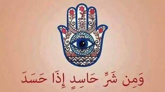 • سورة الفلق” قُلْ أَعُوذُ بِرَبِّ الْفَلَقِ (1) مِن شَرِّ مَا خَلَقَ (2) وَمِن شَرِّ غَاسِقٍ إِذَا وَقَبَ (3) وَمِن شَرِّ النَّفَّاثَاتِ فِي الْعُقَدِ (4) وَمِن شَرِّ حَاسِدٍ إِذَا حَسَدَ (5)”.