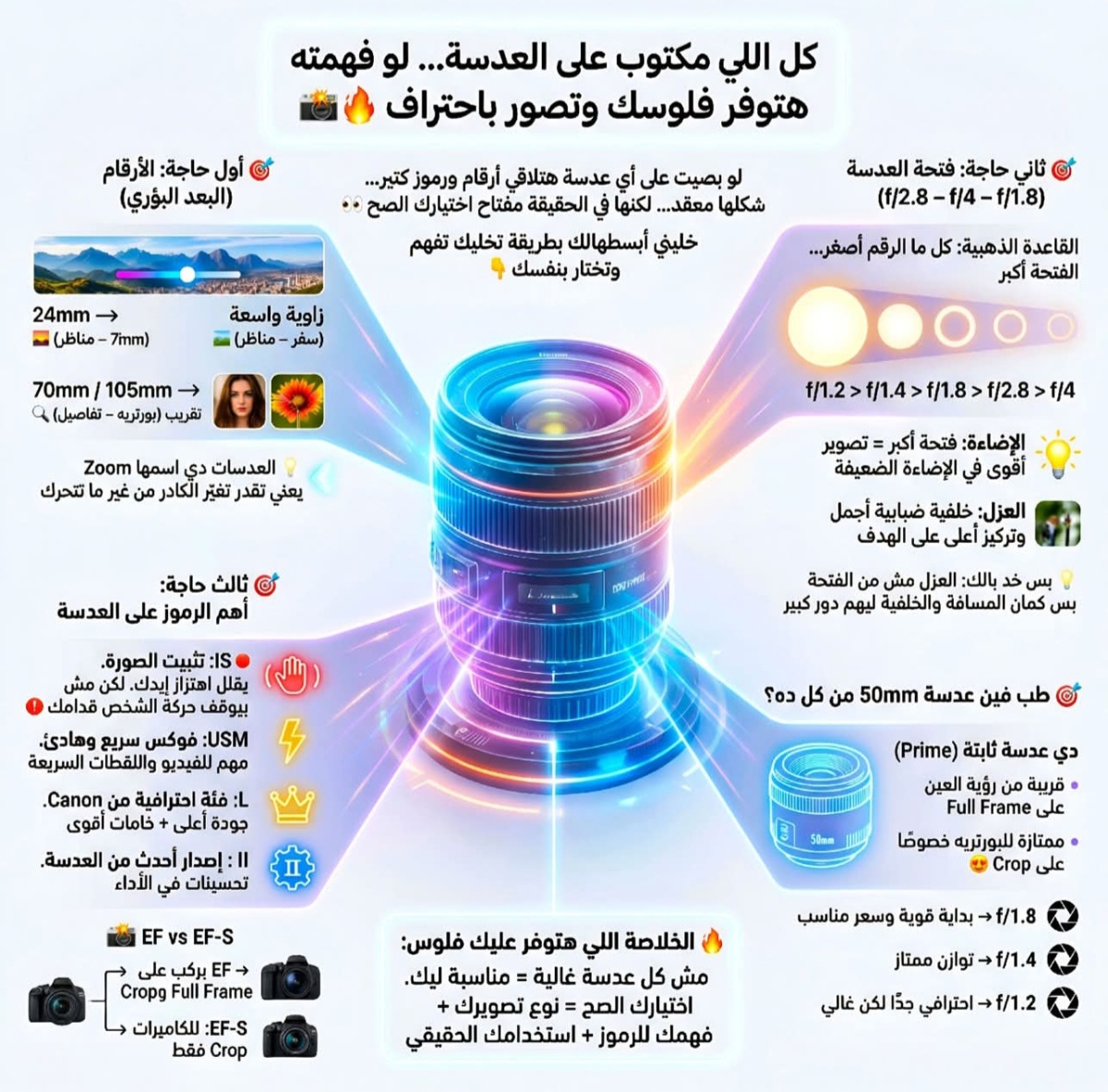 كل اللي مكتوب على العدسة… لو فهمته هتوفر فلوسك وتصور باحتراف 📸🔥