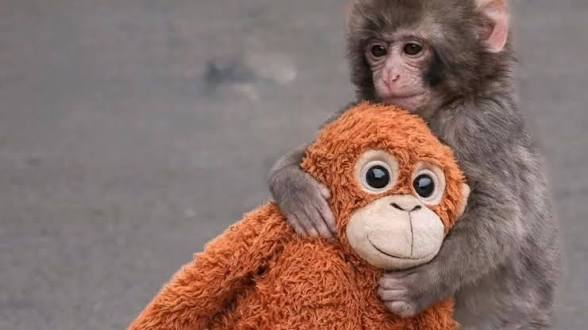 القرد بانش برفقة دميته الشهيرة (رويترز)