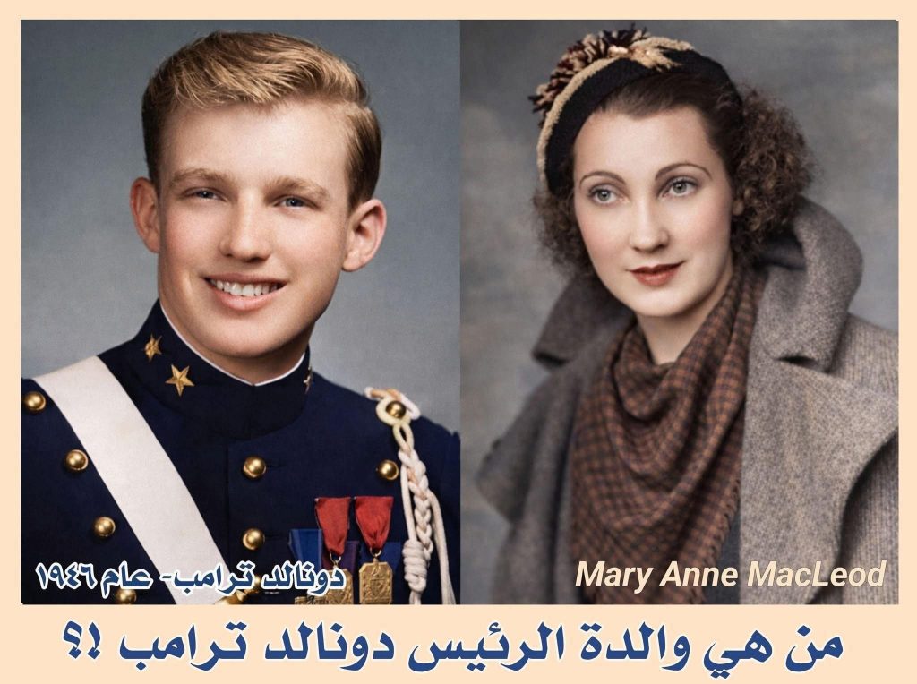 والدة رئيس الولايات المتحدة الاميركية دونالد ترامب ..ولدت ماري ان ماكلويد من عائلة اسكتلندية فقيرة والدها يعمل مزارعا في الارياف وبسبب ظروف مابعد الحرب العالمية الاولى تدهورت الاوضاع كثيرا” مما دفعها للهجرة الى امريكا وتحديدا عام 1930✅كان كل طموحها واعظم احلامها ان تصبح مواطنة امريكية وبالفعل بعد 12 سنة حصلت على الجنسية الامريكية !✅وصلت امريكا ليس في جيبها فقط 50 دولارا” ( مايعادل 850 دولار في ايامنا الحالية ) لتعيش مع اختها التي سبقتها في الهجرة (كريستينا ماثيسون) في لونغ آيلاند حيث عملت كخادمة منزلية لمدة أربع سنوات على الأقل بسبب الفقر المدقع !!✅تعرفت بالصدفة على زوجها ثم تزوجا بسرعة ((حيث قالت له : يا ولد إحنا ماعدنا نسوان تسوي علاقات مع الزلم تريدني تعال اخطبني إحنا مو مال لعب سمعت ززين !! )) !!✅انجبت ثلاثة اطفال والرابع ( ترامب ) والطفل الخامس تسبب باستأصال الرحم وبالكاد نجت من الموت✅عاشا لفترة في منزل حماتها بسبب الفقر الشديد الى ان خرجوا لاحقا في احد المنازل عمل زوجها في العقارات وبدأ يقفز قفزات ملحوظة في الارباح🟥عملت كمتطوعة في المستشفى وشاركت في الأنشطة المدرسية والجمعيات الخيرية.📌شملت أنشطتها تحسين وضع المصابين بالشلل الدماغي والجهود المبذولة لتحسين حياة البالغين المعاقين ذهنياً.📌 أصبحت تعرف باسم السيدة ترامب وأصبحت ناشطة في كل من جيش الخلاص، وفتيان الكشافة الأمريكية، والمنارة للمكفوفين ،📌هذا بخلاف الجمعيات الخيرية الأخرى. كان لها دور كبير في مساعدة النساء في مستشفى جامايكا وكذلك في حضانة جامايكا داي📌 تبرعت هي وزوجها بالوقت والجهد والخدمات والعديد من المباني ذات الصفة الطبية في جميع أنحاء نيويورك. علاوة على ذلك، فإن جناح دار رعاية المسنين المكون من 228 سريرًا في المركز الطبي لمستشفى جامايكا، حيث قضت سنوات متطوعة ضمنه، قد سمي باسمها. أنتمت ترامب إلى العديد من الأندية الاجتماعية.✅وصلنا العام 1990 وقد تعبت ماري كثيرا واصيبت بهشاشة العظام وبالصدفة في باب احد المتاجر واذا بمراهق داشر يضربها ليخطف حقيبتها ويسرق 15 دولار منها وعند دفعها سقطت على الرصيف و أصيبت بعدة كسور في الأضلاع وكدمات في الوجه وكسور في مختلف جسمها ونزيف في المخ وتلف دائم في بصرها وسمعها📌 قام سائق شاحنة توصيل يدعى لورانس هربرت بالقبض على مهاجمها البالغ من العمر 16 عامًا.🤗 لاحقا بعد عدة سنوات قام دونالد ترامب بمكافأة ذلك السائق بشيك أنقذه من فقدان منزله بسبب حبس الرهنتوفي زوجها فريد ترامب عن عمر يناهز 93 عام 1999 لتلتحق هي به بعد عام 2000م