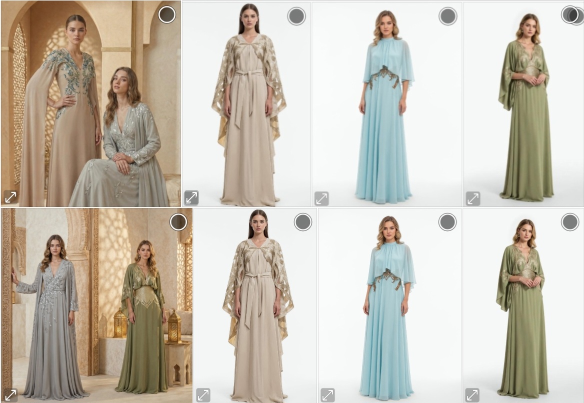 تتألق الألوان الرقيقة من خلال خيوط الحرير الذهبية، عاكسةً الضوء برقة، بينما تُضفي ألوان الباستيل الهادئة لمسة من السكينة على التصميم. يوازن كل تصميم بين الحرفية والهدوء، مقدمًا تعبيرًا عصريًا عن أزياء رمضان المتجذرة في الخشوع والنية الصادقة.