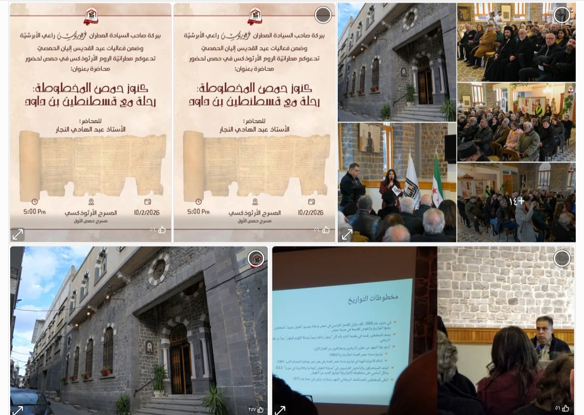 أقيم مساء اليوم على المسرح الأرثوذكسي محاضرة بعنوان “كنوز حمص المخطوطة… رحلة مع قسطنطين بن دواد”، وذلك ضمن فعاليات أسبوع مارليان.