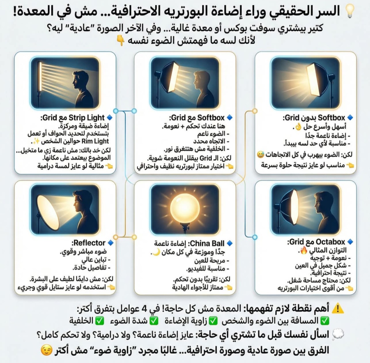 خليني أوضح لك الفرق الحقيقي بين أشهر أدوات الإضاءة 👇